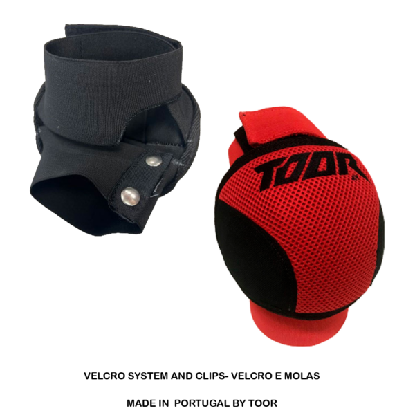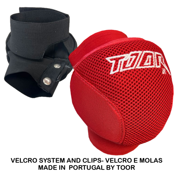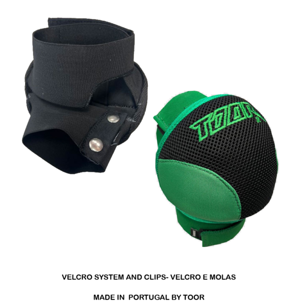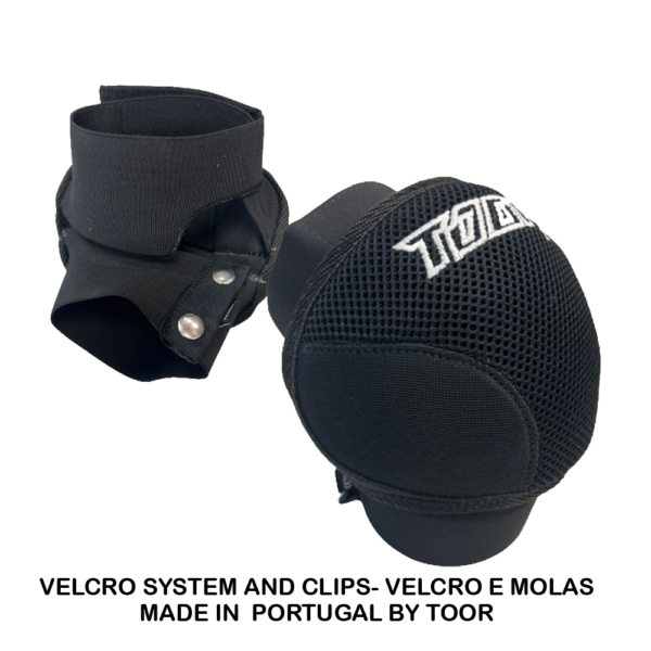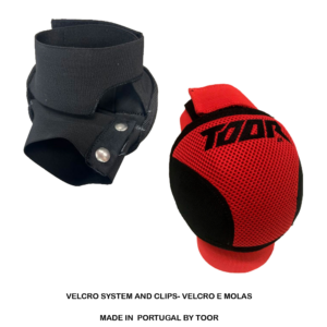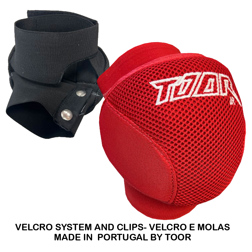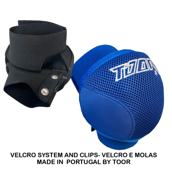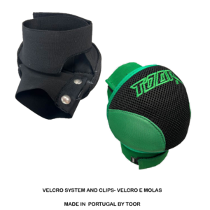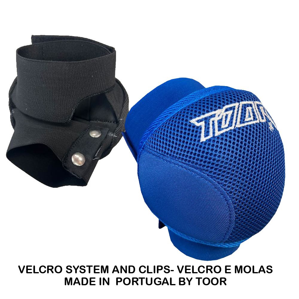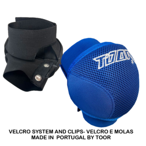As joelheiras TOOR COMPACT para hóquei em patins oferecem excelente proteção e conforto. Possuem sistema de ajuste padrão com molas, com opções mais versáteis disponíveis, como velcro ou sistema misto (velcro em cima e molas em baixo), ambos com preços sob consulta.