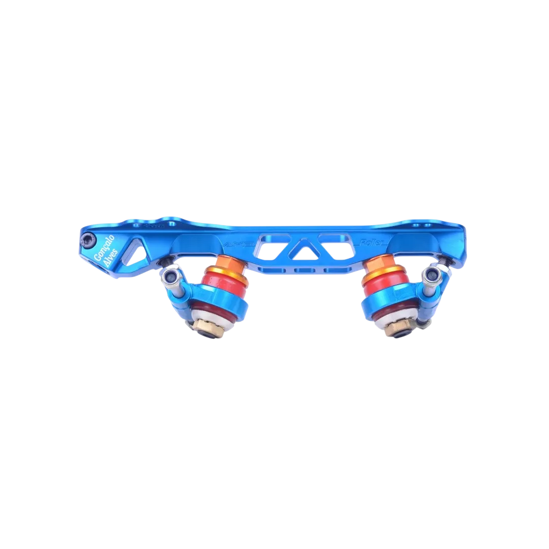 Os Patins AMG Revolution III apresentam-se como as bases profissionais mais leves do mundo, com apenas 850 g por par, combinando design inovador e estrutura rebaixada para transformar a patinagem. Os eixos de direção inclinados e o trem cuidadosamente projetado permitem mudanças de direção rápidas, precisas e altamente sensíveis, sem dissipação de energia.