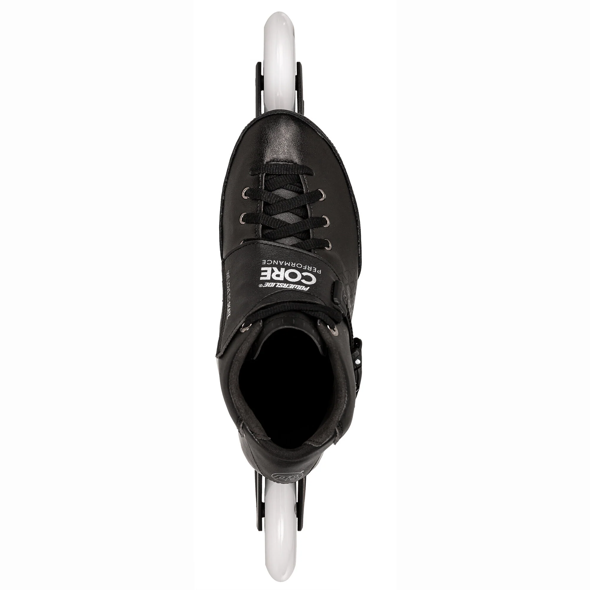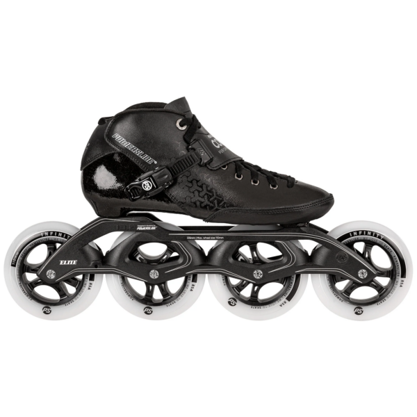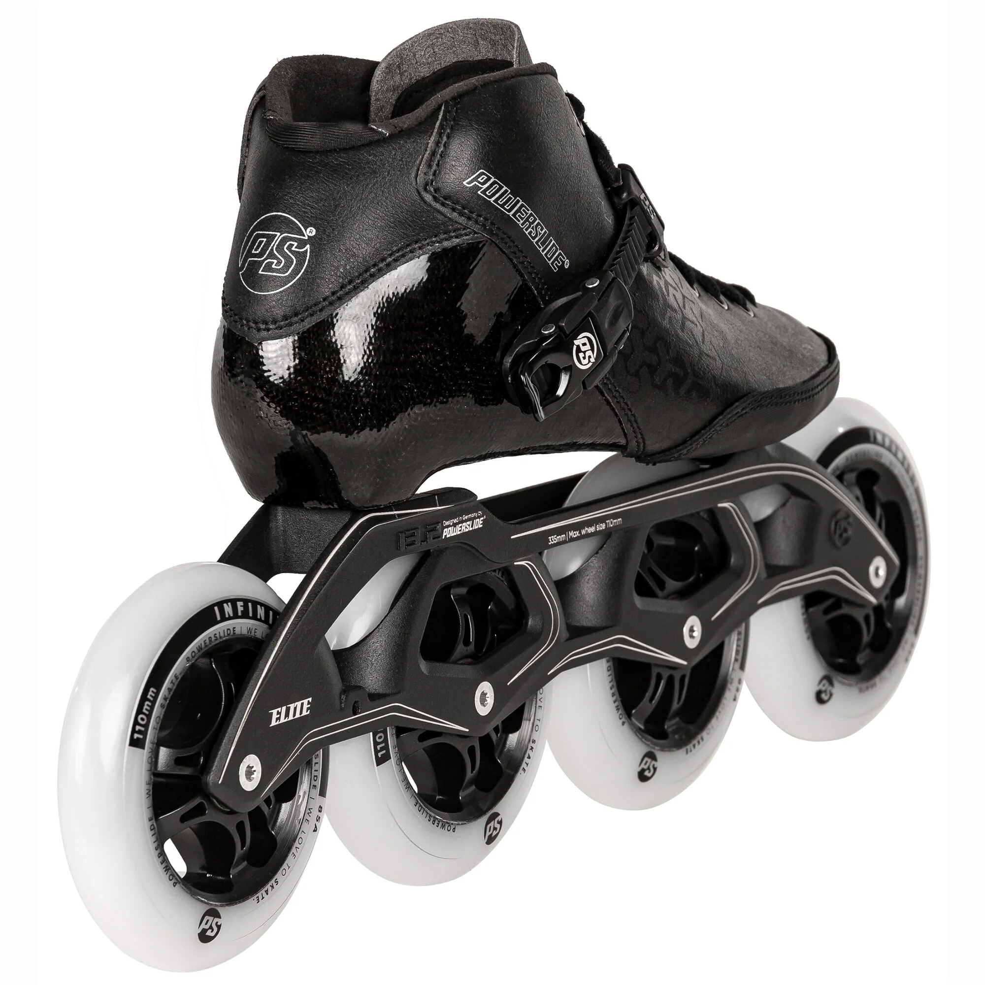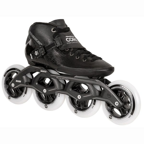 PowerSilde Core Performance Black 4X110 – alta performance e acessíveis. Patins ideais para novos patinadores de velocidade. Montagem de 195mm com Frame Elite, rodas rápidas Infinity de 110mm.