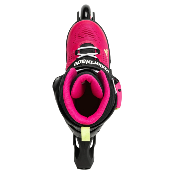 O Rollerblade Microblade é um patim ajustável em quatro tamanhos, ideal para crianças em crescimento. Oferece máximo conforto com forro Junior Fit e malha respirável, além de um frame integrado que melhora estabilidade e controlo. Equipado com rodas 72mm/80A e rolamentos SG3, garante uma patinagem suave e segura. Compatível com sistema 3WD para atualização para rodas 3x80mm.