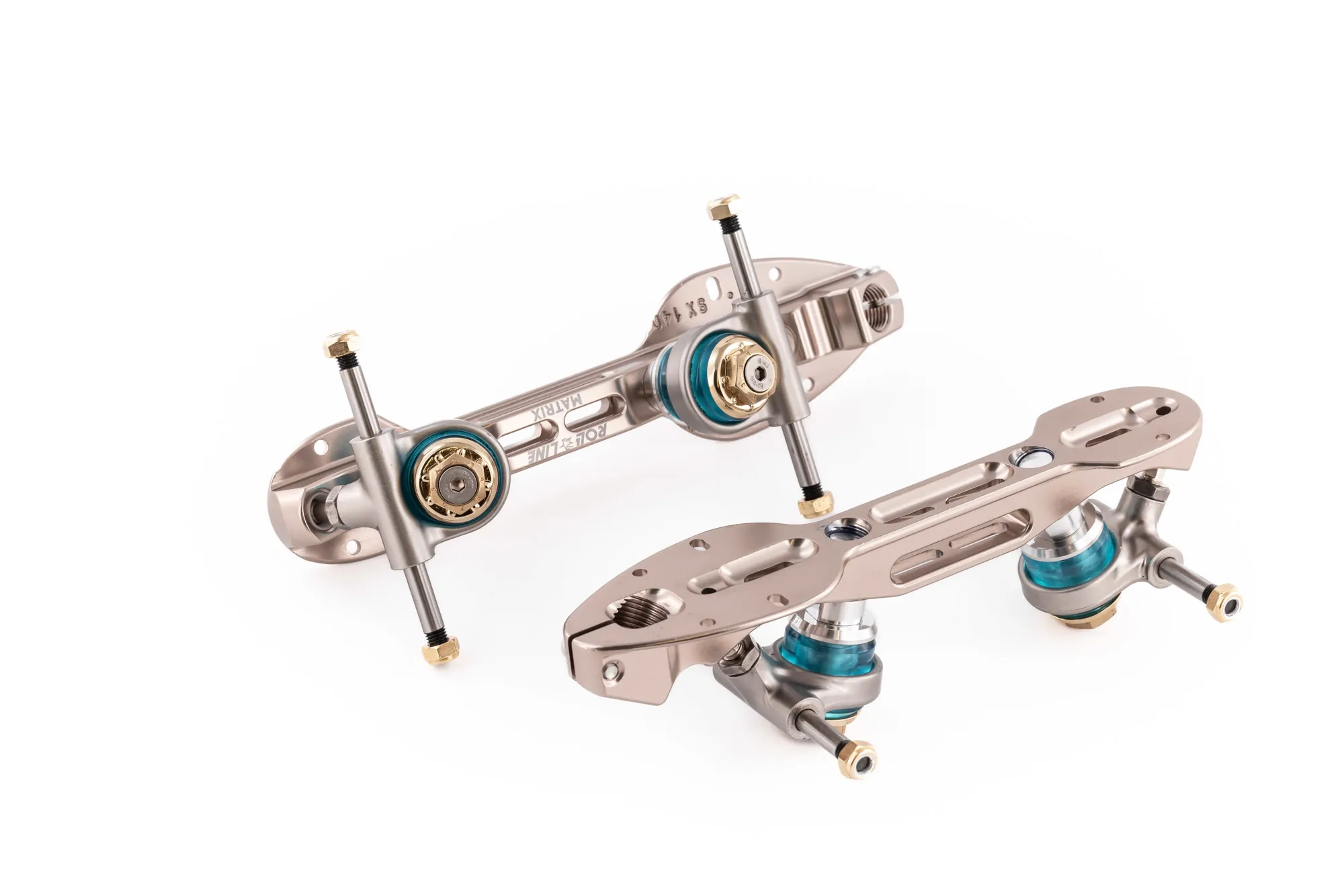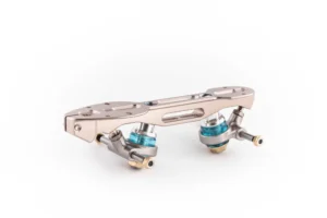 Patins em alumínio para a patinagem artística na modalidade de livres e para hóquei em patins. Com lado esquerdo e direito, afinação por clicks e suspensões rebaixadas. Travão ambra e jogo de chaves.