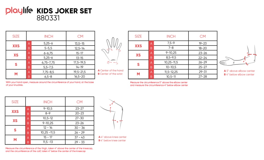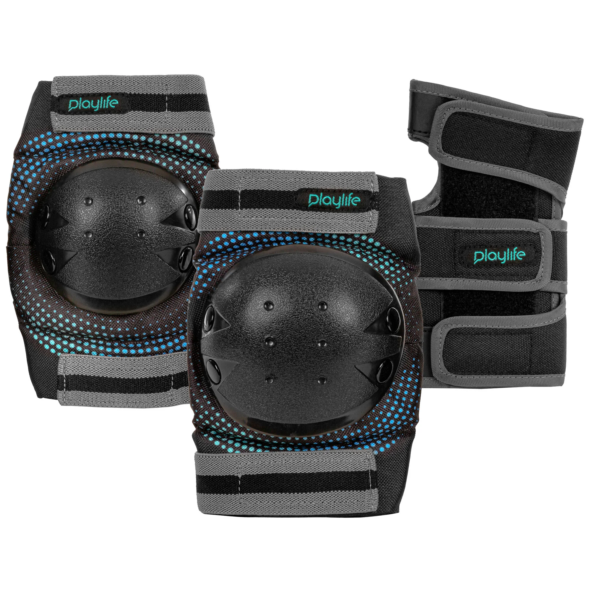O conjunto de três peças PlayLife Joker inclui proteções sólidas de tamanho grande nos joelhos e cotovelos para máxima segurança. Os materiais de espuma EVA de alta qualidade absorvem perfeitamente o impacto. Este conjunto de proteção é anatomicamente projetado para um ajuste confortável e seguro. As proteções de pulso, com suas placas superior e inferior, oferecem a melhor proteção possível para os pulsos das crianças. Este conjunto pode ser utilizado em todos os tipos de desportos de ação, como patinagem ou skate.