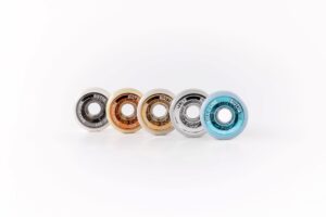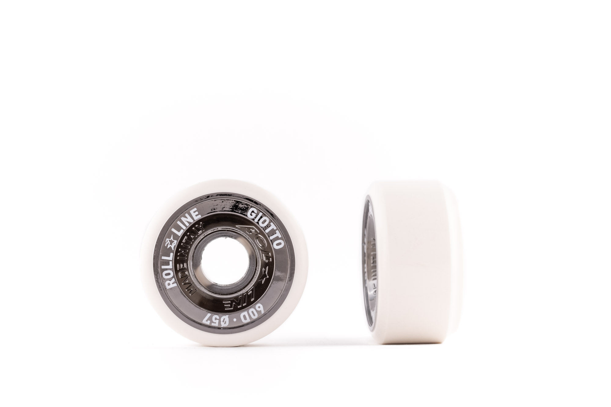 Rodas Giotto da Roll-Line, ideais para livres. Garantem equilíbrio perfeito entre aderência e rolamento. Destacam-se pela sua elegante cobertura cromada.