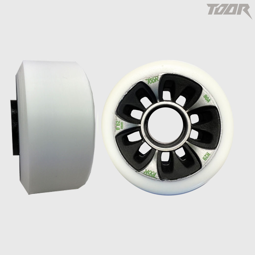 Rodas TOOR em poliuretano para hóquei em patins: adaptação perfeita ao estilo de cada atleta, disponíveis em quatro durezas. Jogo com 8 rodas. Ø 62mm.