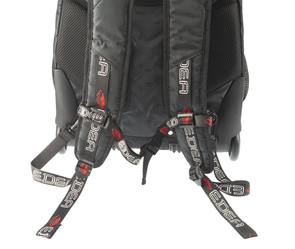 Mochila com Trolley da Edea. Versátil para o dia a dia. Feita de tecido de poliéster anti-rasgão espesso para durabilidade, lavável para fácil limpeza. Estrutura interna para rigidez e leveza. Costas anatomicamente acolchoadas com malha airtech para ventilação e conforto, e alças de ombro acolchoadas ajustáveis com um sistema de ajuste duplo.